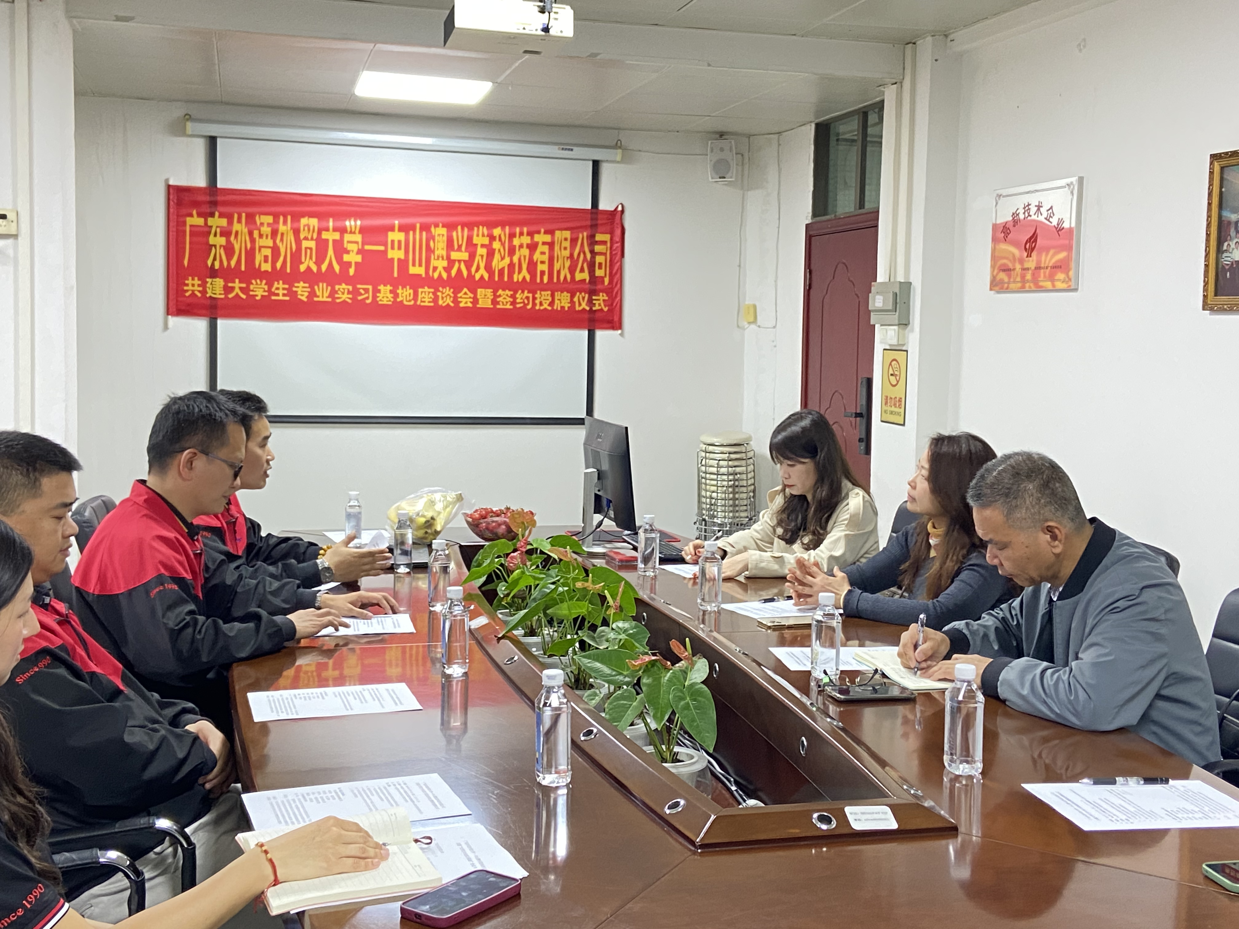 本网讯 为进一步拓宽公司各专业员工专业实习领域、提高人才培养质量,推动产学研一体化深度融合,3月19日,太阳城娱乐经理涂斌、党委组织员(五级职员)高云坚、行政管理系主任杨美芬、秘书吴海蓝等一行赴中山市三乡镇兴发科技园中山澳兴发科技有限公司座谈交流,并在现场举行共建老员工专业实习基地签约授牌仪式。澳兴发科技有限公司副总经理余文钦,总工程师胡世佳,销售经理刘刚、伊永珍,人事经理黄敏英等出席仪式。座谈会由澳兴发科技有限公司总工程师胡世佳主持。