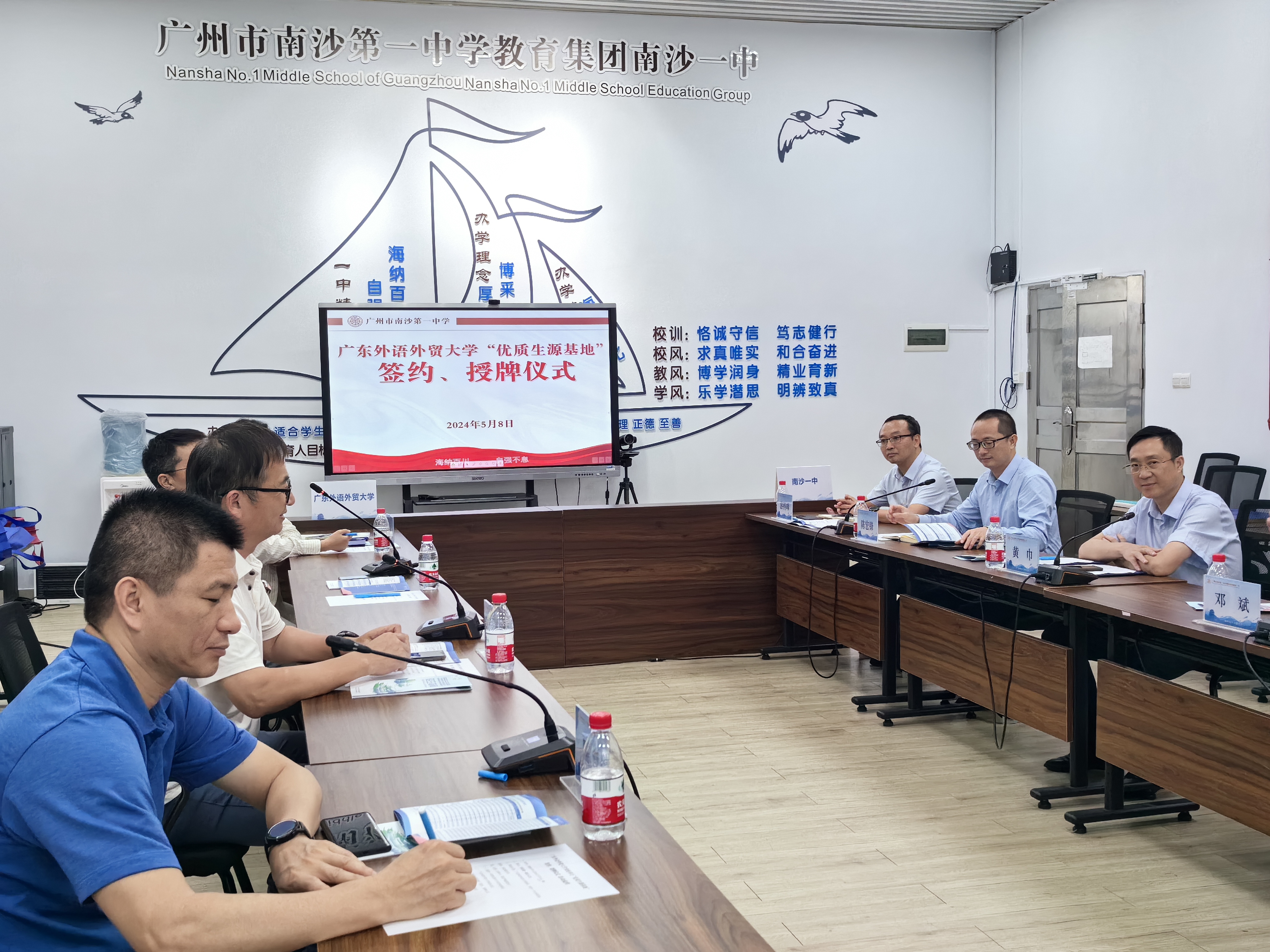 随后,双方就加快推进生源基地建设,实现高质量发展等议题展开了热烈研讨,提出了一系列具体的、可操作性强的建设方案,如开展本科招生宣讲暨志愿填报咨询、选派心理学专业学子赴南沙一中实习、开设小语种兴趣课程等,并举行了“优质生源基地”签约与授牌仪式。
