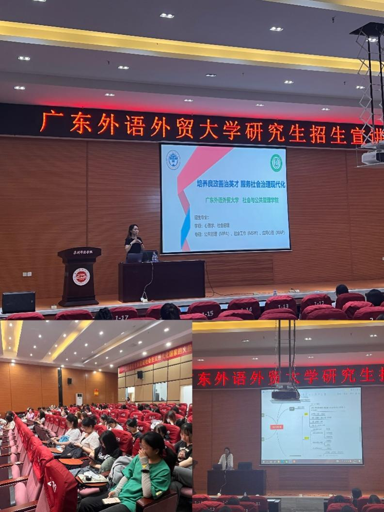 本网讯 2024年5月6日至7日,公司应用心理专业硕士教育中心主任毕爽和应用心理学系教师吴晓涵前往广东省潮州市韩山师范公司以及福建省泉州市泉州师范公司,开展了研究生招生宣讲和学术交流活动。