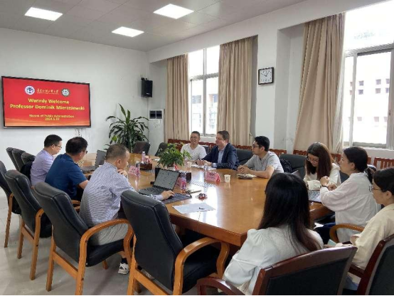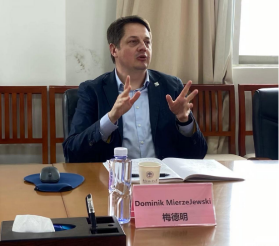 5月22日,波兰罗兹大学亚洲事务中心主任、国际与政治研究公司教授Dominik Mierzejewski(梅德明)应邀到公司开展以“地方政府国际合作问题与挑战”为题的讲座。公司党委书记邵兵,副经理陈胜、费久浩,MPA中心主任林海彬,行政管理系王达梅教授以及部分师生代表参加讲座。讲座由副经理陈胜主持。