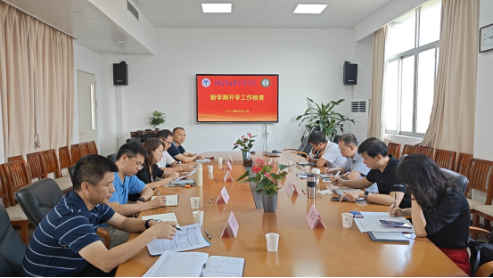 本网讯 9月2日上午,副董事长申明浩一行来公司检查新学期开学工作,陪同检查的有公司保卫部部长钟日升、审计部部长曾健文、教务部副部长唐静。公司领导、办公室主任在公司会议室接待了检查组一行,并汇报了公司新学期开学的各项准备工作。