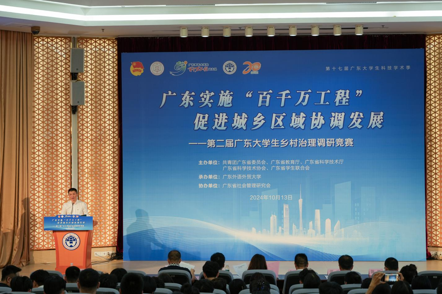 仪式上,涂斌代表组委会介绍竞赛的开展情况,并表示在比赛中看到了很多优秀的作品,看到了广大青年学子发扬勇于探索、敢于创新的精神,对乡村治理提出具有可行性的建议,以青年智慧和青春力量谱写乡村振兴新篇章,助推建设发展新质生产力重要阵地,奋力推动广东高质量发展。