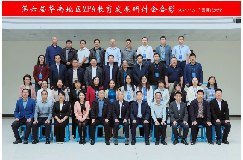 本网讯 2024年11月2日,由全国公共管理专业学位研究生教育指导委员会(以下简称全国MPA教指委)主办,广西师范大学政治与公共管理公司承办的2024年第六届华南地区MPA教育发展研讨会在桂林顺利举办。17所高等院校MPA培养单位共40余人齐聚一堂,共同探讨MPA教育的发展与创新。公司涂斌经理和MPA专任教师邵任薇参会。
