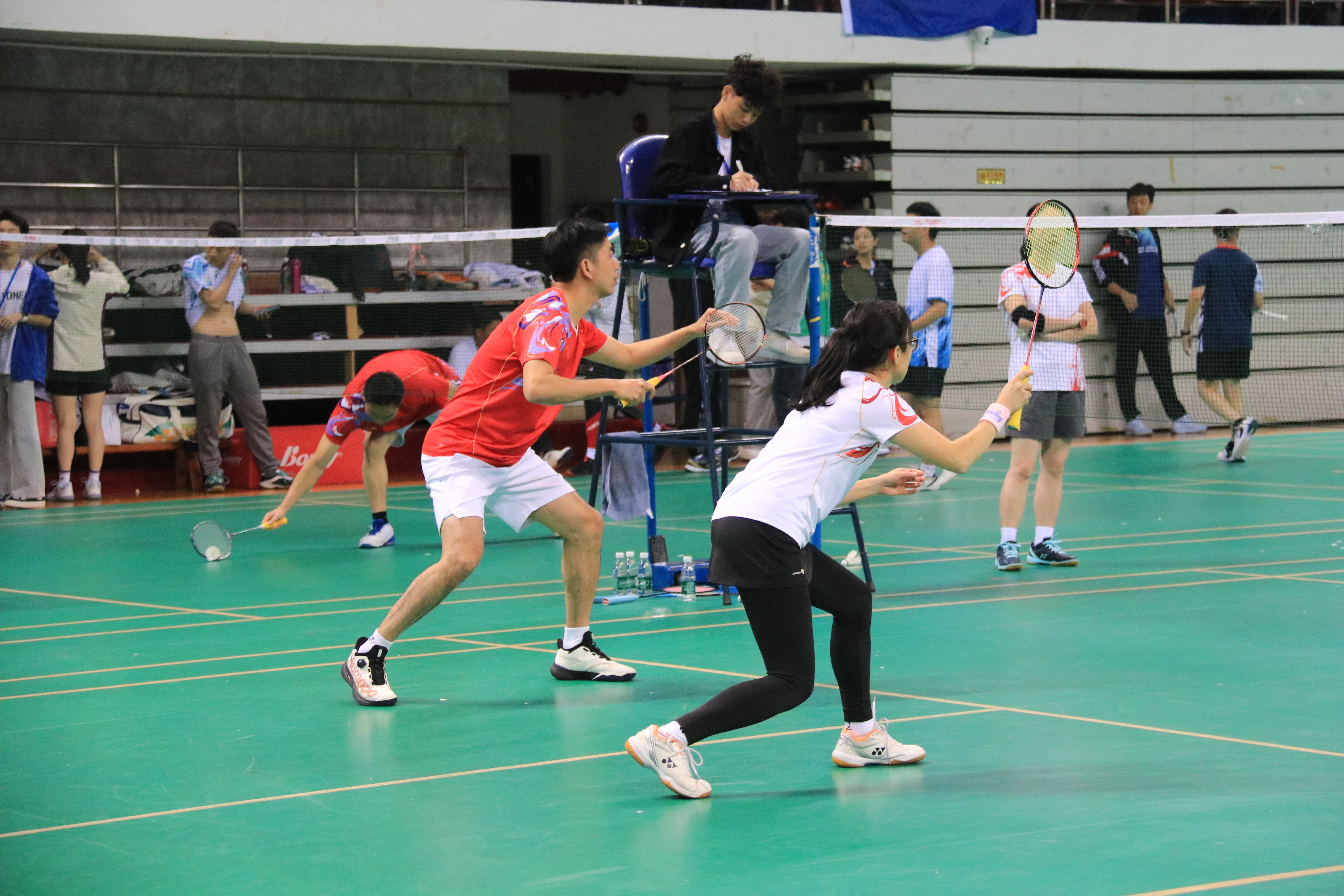 在比赛中,各校院领导们相互切磋,默契配合,展现出团队协作的魅力。每一次精准的击球、每一次精彩的扣杀,都引发了观众们的阵阵喝彩与掌声。赛场上,欢笑与竞争交织,友谊与激情碰撞,形成了一幅生动的画面,让人感受到羽毛球运动所带来的无穷乐趣。