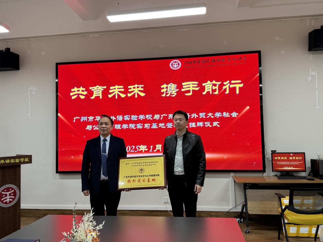 2025年1月10日下午,应用心理学系张信勇教授、王俊静副教授和毕爽副教授前往广州华商外语实验公司进行本科和研究生实习基地的挂牌仪式。在挂牌仪式上,双方就员工实习和就业、以及合作研究等方面开展深入的探讨,并表示非常期待未来的合作。此次拓展实习基地进一步增加了员工的实习和锻炼机会,也增加了教师们的合作机会。