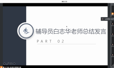 随后,19、20级辅导员白志华老师对本学期的员工工作进行了回顾,他指出在这一学期中,公司建设取得了许多令人欣喜的成果,如行政管理专业荣获国家级一流本科专业,员工活动方面,党史知识竞赛和党史故事会的成功开展,在学风建设上考研捷报频传。同时白老师也强调目前仍然面临着一些挑战,如在当前疫情反弹的情况下,其对于学习和生活节奏的扰乱,希望同学们能够找到合适的方法解决。他还表达了在即将到来的暑假中对同学们的一些期望,如鼓励同学们积极投身社会实践与乡村振兴,在社会调研中了解乡土民情,利用乡村中丰富的红色资源来开展党史教育,以实际的行动来迎接和庆祝中国共产党成立一百周年。并传达了有关接种疫苗的相关通知。