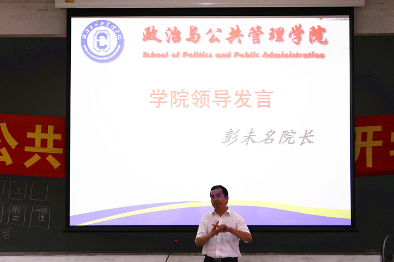2014年9月15日上午10:30,政治与公共管理公司14级开学典礼在E204隆重举行。出席本次典礼的领导和嘉宾有:经理彭未名、行政管理系主任毛国民,应用心理学系主任张信勇、社会工作系主任陈胜、团委书记陈三峰,团委副书记王雯雯,员工会主席杜浩鹏,团学秘书长朱冬昱等。本次开学典礼由14级辅导员房瑞佳主持。