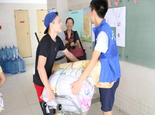 政管团学全体干部和迎新志愿者主要负责新生引导、行李搬运和咨询问答等工作,在团学的组织协调下,志愿者有条不紊地开展各项工作,不仅得到了新生及其家长们的一致认可,更获得了他们由衷的感谢。