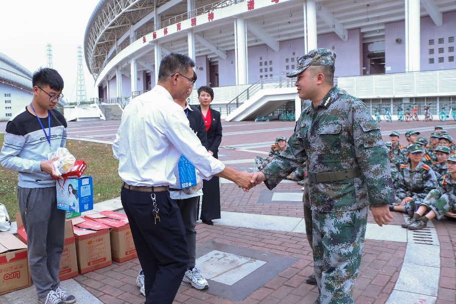 随后公司领导向全体参训教官与员工以及跟训朋辈导师发放慰问品,大家有序地进行慰问品的领取,并表达了对公司领导老师们关心的感谢。冬日的暖阳照在同学们身上,公司的慰问温暖了同学们的心头,让同学们感受到了公司对大家军训的重视与支持,给予同学们刻苦训练的动力。
