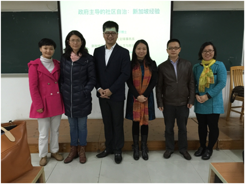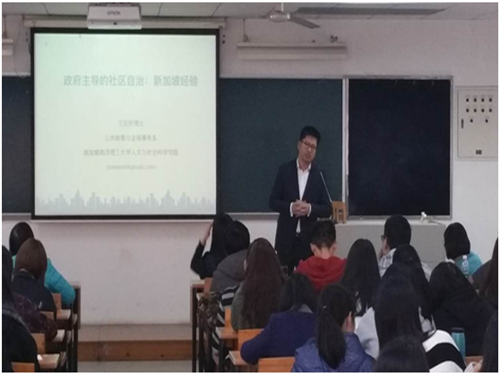 12月7日下午,由公司校级科研团队社会管理创新研究团队邀请的新加坡南洋理工大学博士于文轩,在教学楼F209进行了题为“政府主导下的社区治理:新加坡经验”的专题讲座。参加本次讲座的有政管公司书记高云坚,社会管理创新研究团队负责人涂斌教授以及她带领的创新团队全体骨干成员。与会的还有政管公司的专业教师陈胜、柳玉臻等以及社会管理专业研究生、行政管理系和公共管理系2013级同学。讲座由创新团队负责人涂斌教授主持。