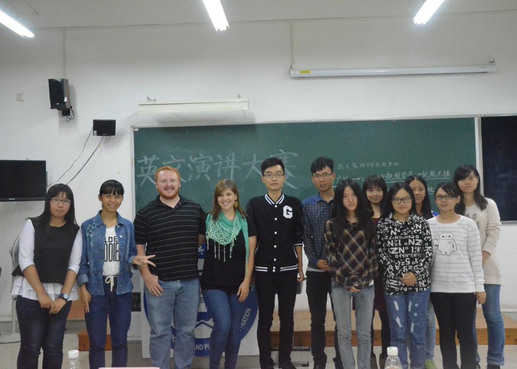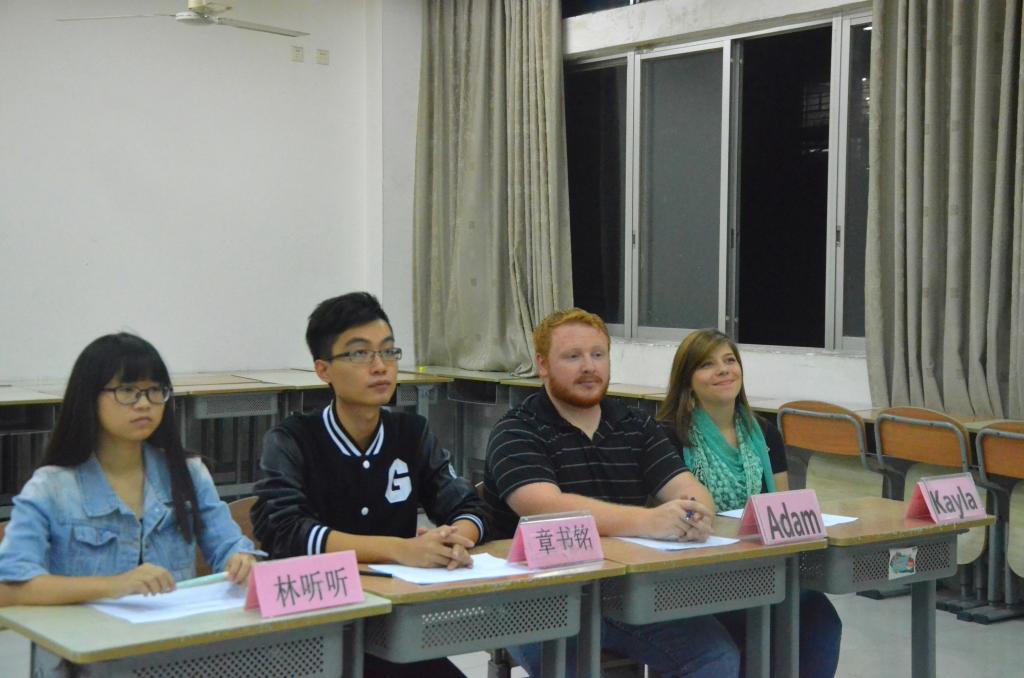 10月12日19:00,政管英语演讲大赛院级选拔赛在教学楼F201顺利举行。本次选拔赛有幸邀请到外教Adam和Kayla,政管员工会副主席林听听和章书铭担任本次选拔赛的评委。