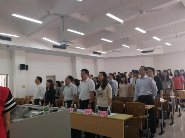 大会开始,在场人员全体起立,奏唱国歌。大会在庄严的国歌声中拉开帷幕。