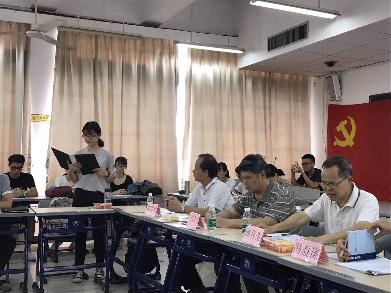 6月9日下午,政管公司在D410举办以“让青春在党旗下激扬”为主题的2017届毕业班党员主题党日活动暨预备党员宣誓仪式。参加本次大会的有全体毕业生党员、全体预备党员。活动特邀校关工委主任、院关工委委员冯益谦教授,院关工委委员刘启光书记、公司党委组织部特聘组织员邱月生书记与会座谈交流。出席会议的还有公司办公室主任施可明,毕业班辅导员房瑞佳、党务秘书白志华等,会议由公司党委书记高云坚主持。