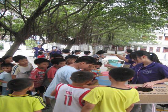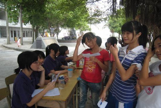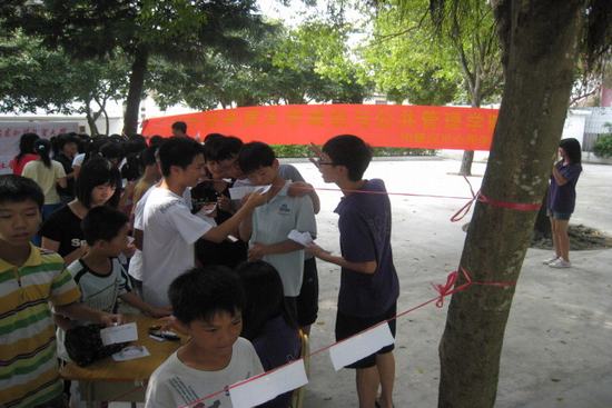 727日下午300——5:00,为了检测孩子们近日的英语学习效果并在娱乐中巩固所学,政管“随心一夏”夏令营在教学楼前的空地上开展了英语知识游园会活动。