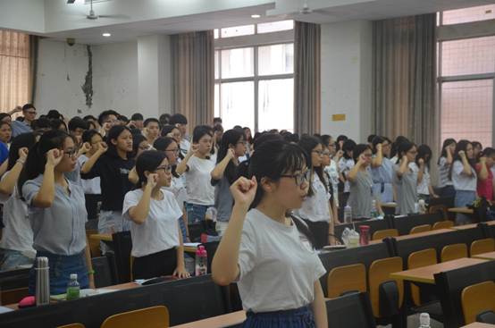 接下来是宣誓环节。由员工代表张佳慧领誓,全体16级员工庄严宣誓。所有同学都表示自己会积极认真备考,诚信考试,诚实做人,端正考试态度,通过自身努力取得良好成绩,展现政管学子良好的知识水平和道德水准。相信同学们一定会用真实的成绩证明自己的实力,成为一名诚实守信的老员工!