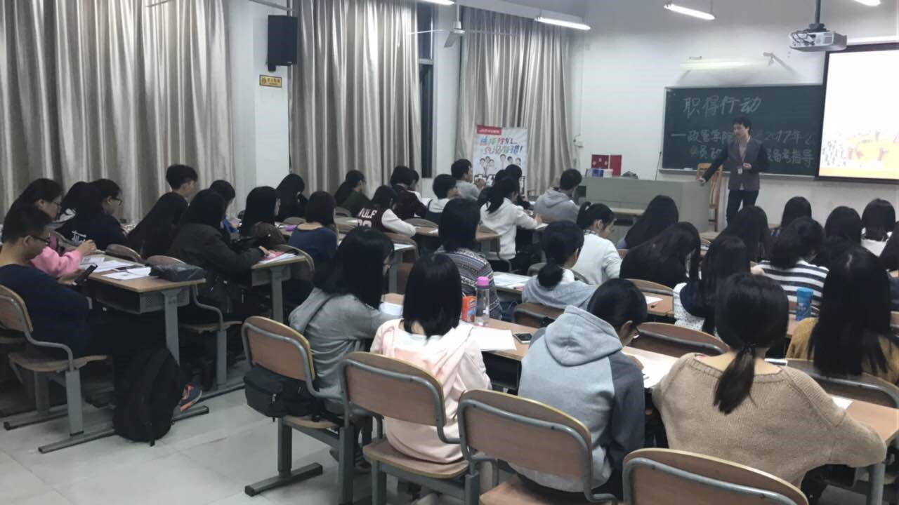 2016年12月22日,“政青春职得行动”员工职业辅导系列活动之公务员备考指导讲座于19:00在教学楼B209顺利举行。