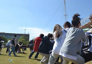 在运动员代表、裁判员代表宣誓后,院运会正式开始。此次院运会不仅设有正规的田径项目,还安排了足球运球绕障碍接力比赛、10人集体跳绳、拔河趣味比赛等三项趣味团体比赛。