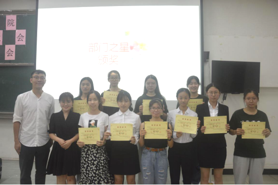 考评结束后,党委副书记潘相宇、辅导员白志华、张馨丹分别为获得优秀的部门和先进集体进行了颁奖。