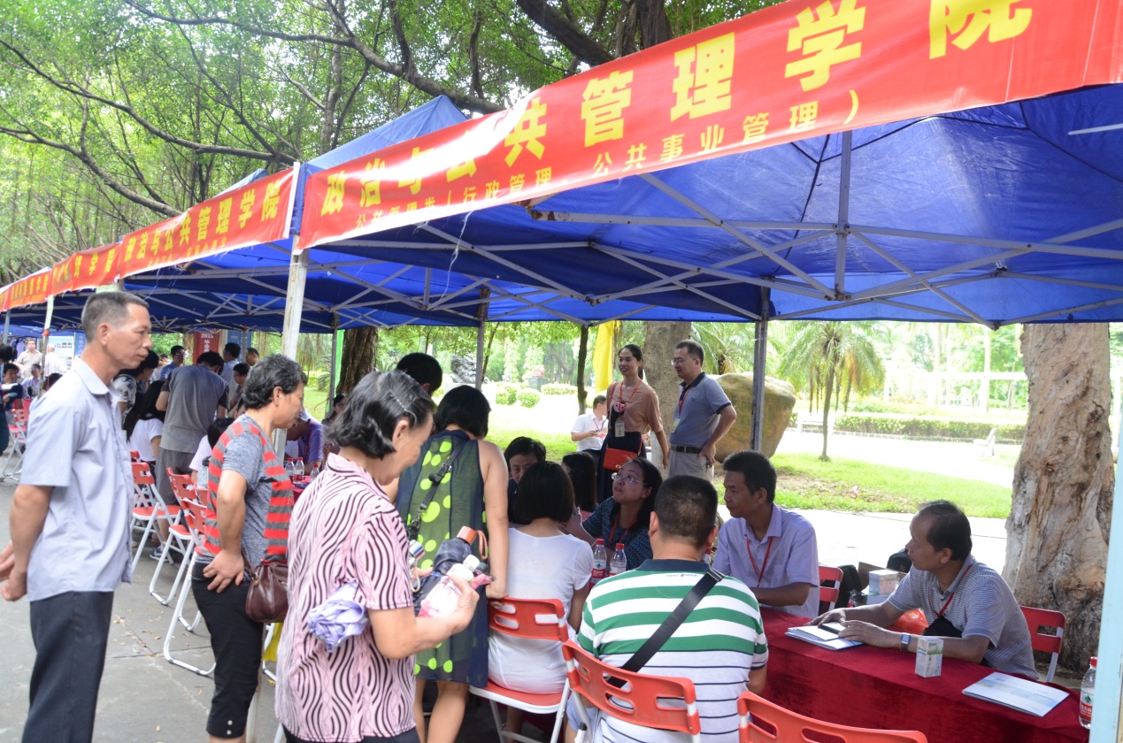 2015年6月20日,广外第十六届“大学开放日”在北校区拉开了序幕。政治与公共管理公司经理彭未名、党委书记高云坚、副经理毛国民、党委副书记邵兵、办公室主任施可明,以及各系系主任和老师均到现场为考生和家长们答疑。