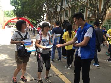 广外各个公司精心制作的介绍招生专业和办学成果的展板在北校区校道集中向考生和家长展示。各公司设立咨询点,向考生及家长发放《广外2017报考指南》、《广外招生简章》等资料,介绍公司的招生政策、招生计划、专业及课程设置、历年招生分数、未来就业趋向、奖优助学、勤工俭学等方面的情况,同时接受考生和家长其他各类咨询,各公司的领导老师、团委员工会成员们都热情地为考生与家长解答疑惑,他们彬彬有礼与热情接待,为家长和考生们提供了有力的帮助。与此同时,艺术公司的同学们在空地上热情地为远道而来的人们表演舞蹈、歌唱,尽情地展示着艺术的魅力,载歌载舞赢得了大家的赞赏,形成了一道亮丽的风景线。