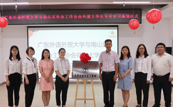 5月19日上午,公司党委书记高云坚一行前往深圳市南山区社会工作协会出席共建老员工实习基地签约揭牌仪式。南山区社会工作协会副会长兼秘书长王会娟、行政部部长林丽丽、项目部部长施章龙、服务部负责人邹丹妮以及太阳城娱乐研究生辅导员郭晶晶、行政秘书黄欣晨出席。