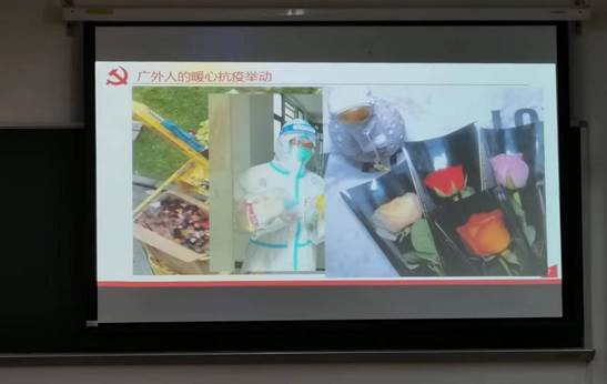 21级各班紧随其后。社工2101班专业地介绍了关于新冠病毒的专业知识,并带领同学们回顾了9月16日疫情发生后大学城校区全体师生同心战疫、共克时艰,奋战7天后迎来抗疫胜利的故事;最后介绍了预防患病的办法与措施。行管2101班回顾广外抗疫历程、介绍公司最新防疫政策以及加强网络素养教育,引导同学们学会感恩、积极配合,提升网络素养。应心2101班开展了以“广外师生携手共抗疫情”“疫情防控政策以及公司疫情防控的工作要求”“正确看待网络舆情,坚定抗疫信心”的主题班会,回顾了7天抗疫的暖心瞬间,系统性地讲解公司的防疫政策,帮助同学们增强网络文明意识。