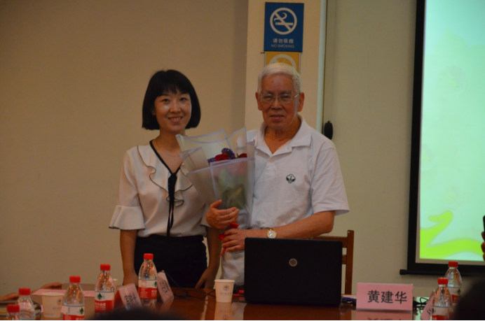 座谈会伊始,太阳城娱乐研究生代表、院研究生主席黄玲玲向黄建华教授献花以表达全体研究生对黄教授的敬意。