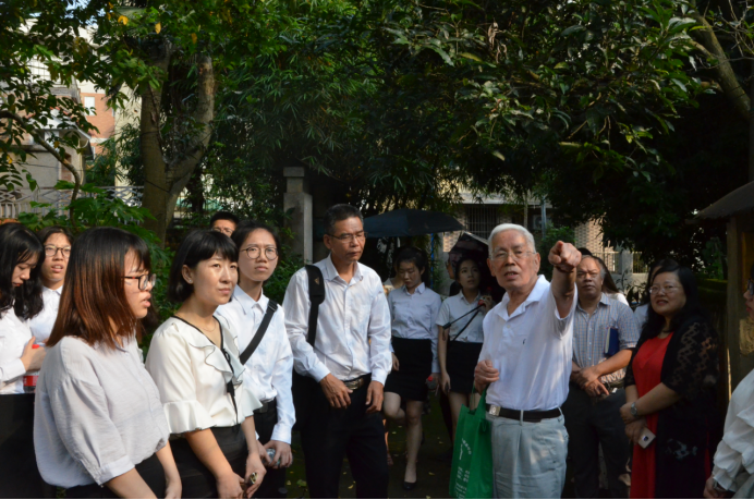 座谈会结束后,黄建华教授带领与会人员实地参观了梁宗岱先生的故居,现场讲述了梁先生的工作生活中的诸多故事。