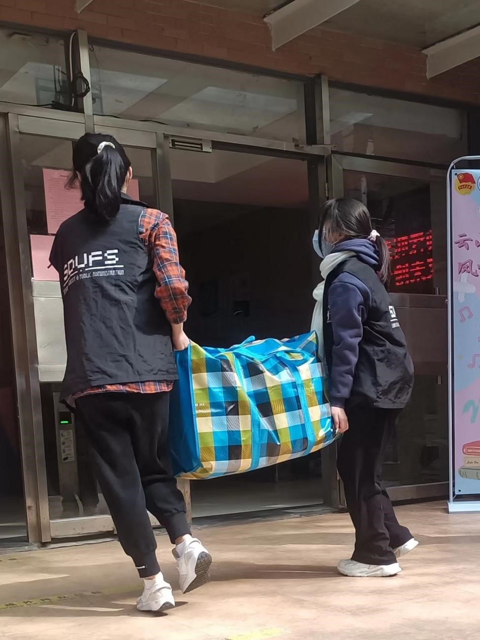 同学们在志愿者的帮助下,有序、顺利进入校园,返回宿舍。