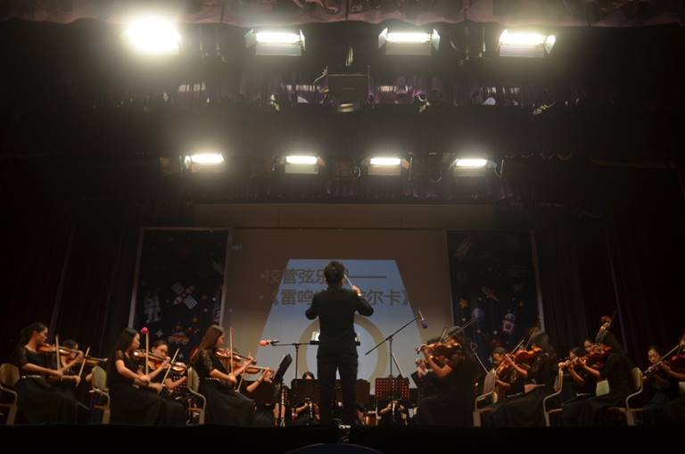 本场晚会以一曲校管弦乐队带来的激昂的《雷鸣电闪波尔卡》交响乐热力开场,点燃了整场晚会的气氛。