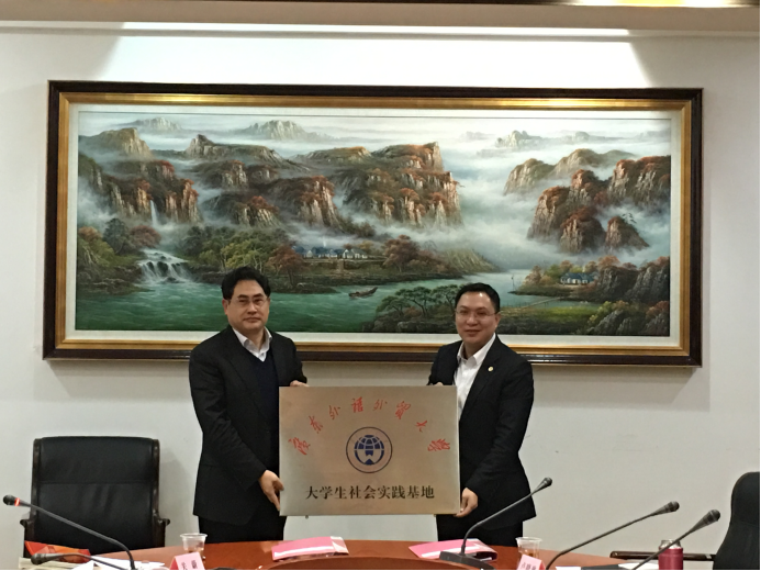 座谈会结束后,活动进入签约授牌仪式环节。首先,公司副董事长刘海春与省扶贫开发协会秘书长钟韶彬进行了共建“实践实习基地”的合作签约。随后,刘海春副董事长向省扶贫开发协会授牌。