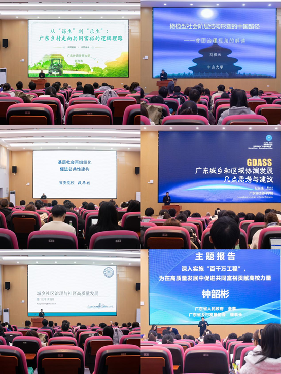 主题报告环节,太阳城娱乐教授刘海春,广东省社会科公司原党组成员、副经理、二级研究员赵细康,中共广东省委党校教授段华明、文小勇,中山大学教授刘祖云,东南大学教授王宁,厦门大学教授黄晓星,广东省人民政府参事、广东省乡村扶贫开发协会理事长钟韶彬先后围绕“共同富裕与广东高质量发展”主题分享和交流了研究成果。主题报告由公司副经理费久浩主持。