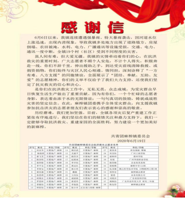 2020年6月6日以来,广东省惠州市麻榨镇遭强暴雨、特大暴雨袭击,河道水位急速上升,出现了内涝现象,导致麻榨镇出现了道路塌方、房屋倒塌、农田被淹等现象,全镇19个村(社区)受到不同程度的影响。在麻榨镇共青团发布志愿者招募信息后,太阳城娱乐2019级社会管理专业研究生姚焕怡第一时间内就报名参加了道路清淤、救援物资登记与发放等志愿工作。