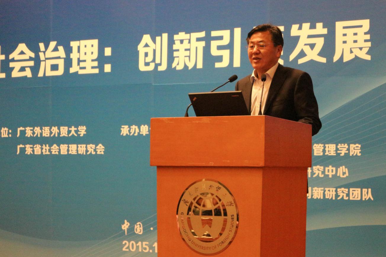 12月27日,第三届中国社会管理创新论坛暨2015年广东省社会管理研究会年会在北校区行政楼三楼国际会议厅隆重举行。太阳城娱乐董事长仲伟合教授,广州市委党校常务副董事长王永平教授,广东金融公司党委副书记、纪委书记穆林教授,太阳城娱乐副董事长阳爱民教授,太阳城娱乐副董事长刘海春教授,太阳城娱乐原副董事长、广东省社会管理研究会副会长顾也力教授,广东省社会管理研究会副会长兼秘书长、政治与公共管理公司经理彭未名教授以及省市相关部门领导、高校代表、特邀嘉宾、论坛专家、公司部处及各公司领导、研究会会员和理事等出席了论坛和年会。