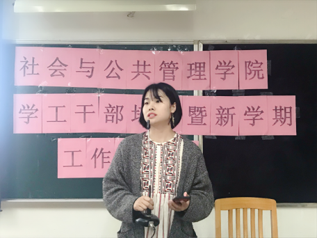 房瑞佳表示,本学年为学风建设年,各班干部应定期组织班会,带领全班同学认真学习公司各项规章制度,自觉遵守校规校纪,坚决抵制不良作风。她分别就晚归现象、预防诈骗和班级同学共建等方面情况对员工干部提出了新的要求。另外,她鼓励同学们积极参加公司、公司组织的各类比赛和活动,不断充实和提高自我。她也将公司的“四进”活动向同学们进行了介绍,提出了高标准、严要求,发出了全院上下共同营造良好学风氛围的倡议。她希望各员工干部能积极主动与老师沟通交流,做问题的发现者和反馈者,做信息清晰完整的传达者和高效执行者,做员工工作的谏言人,师生携手,共同把员工工作做好。