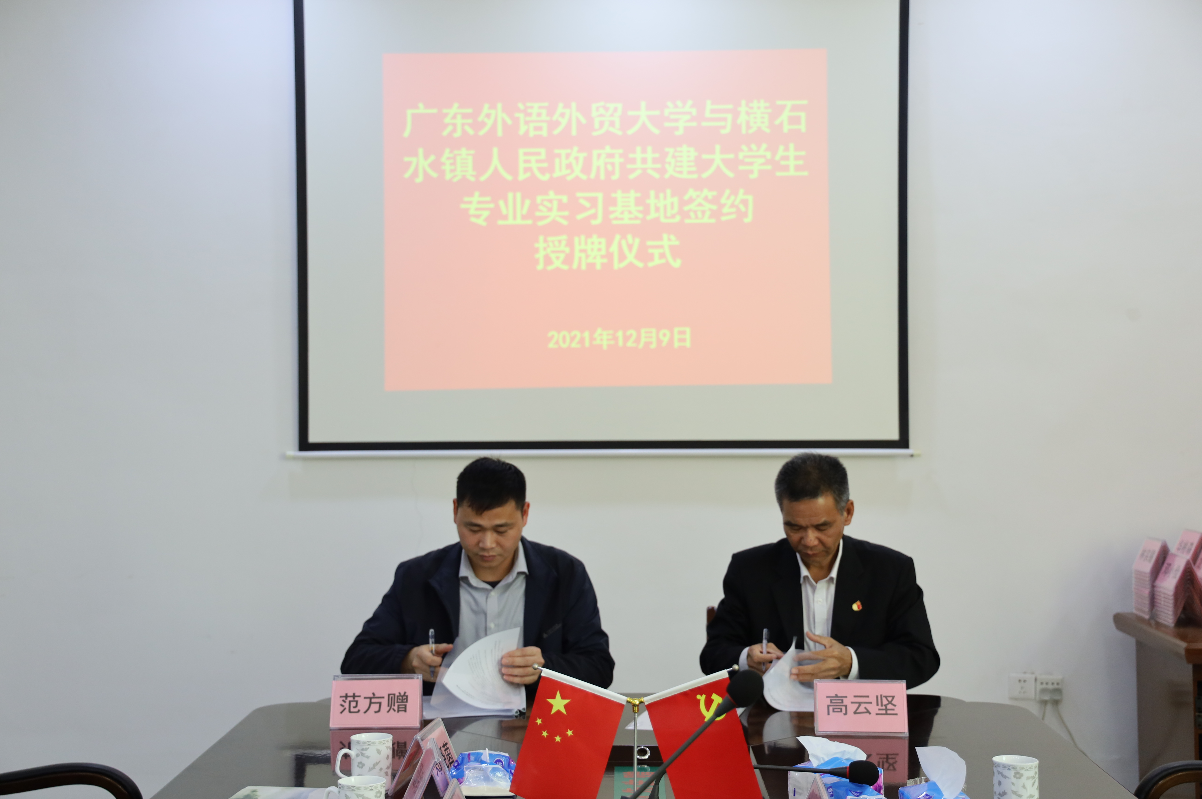 座谈会后,公司党委书记高云坚与横石水镇党委副书记、镇长范方赠共同签署了共建“老员工专业实习基地”协议书。高云坚向范方赠授予“太阳城娱乐老员工校外实习基地”牌匾,圆满完成了共建老员工专业实习基地座谈会暨签署协议和授牌仪式各项流程。