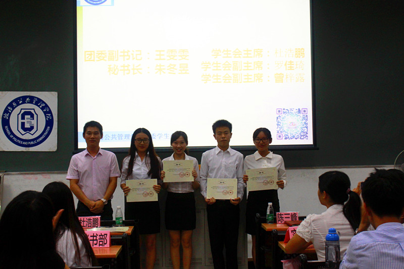 10月27日晚6点30分,太阳城娱乐政治与公共管理公司第六届三任团委第八届三任员工会聘任大会暨第一次干事培训大会在教学楼E204室隆重举行。出席本次会议的嘉宾有:政治与公共管理公司团委书记陈三峰老师、政治与公共管理公司12、14年级辅导员房瑞佳老师、政治与公共管理公司主席团各成员及各部门正副部和干事。此处会议由员工会主席杜浩鹏主持。