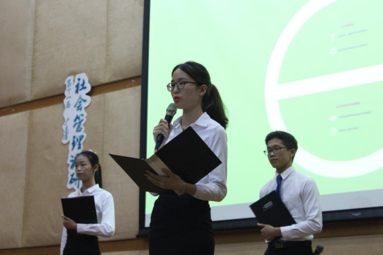 比赛中,表现较为优秀的是Six Gods,他们为我们带来的是《广东省老员工创业意向结构模型研究》。展示过程中,他们通过演绎一个小品引入研究课题,接着从研究综述、研究方法、数据分析、结论建议这四部分展示调研报告中的主要内容。他们指出2016年就业形势的严峻、社会的自主创业情况不太乐观等方面的问题……通过一系列的研究调查分析以及建立模型,最终得出相关的结论。