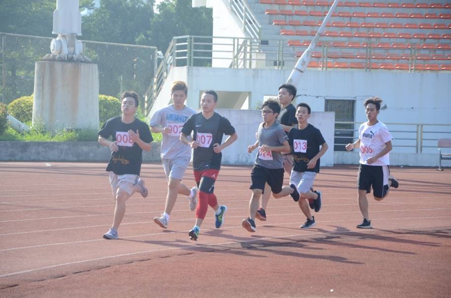男子1500米: 心理1601苏金源 行管1501蔡俊源 社工1701袁一夫