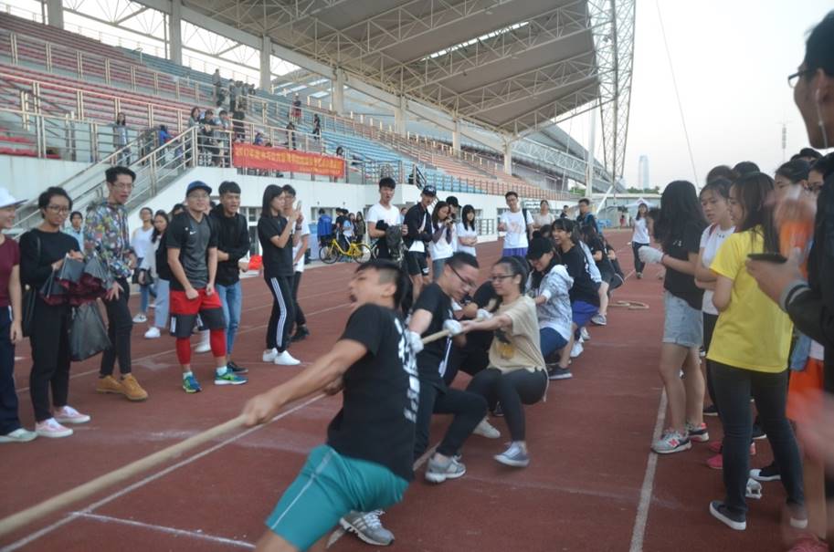 本届运动会的最后一项是考验团结合作的拔河比赛。虽然部分班级只有三四个男生,但16、17级所有班级都踊跃加入了这次比赛。同学们喊着“一二”的口号,一齐用力。输赢并不重要,只要大家团结一致,力往一处使,不抛弃,不放弃,就是一个团结友爱的班集体,这也彰显了本次院运会的意义。