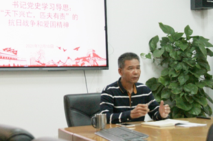 高云坚书记从将1894年的甲午中日战争说起,讲到八国联军入侵中国,再讲到1931年开始持续14年的与抗日战争,展示了近代以来积贫积弱的中国所处的宏大的历史背景,分析了落后就要挨打的史实进行了对比,强调学史要崇德、明志,并从天下兴亡、匹夫有责的爱国情怀,视死如归、宁死不屈的民族气节,不畏强暴、血战到底的英雄气概,百折不挠、坚忍不拔的必胜信念等四个方面的抗战精神中,再一次深入的讲解伟大的抗战精神。