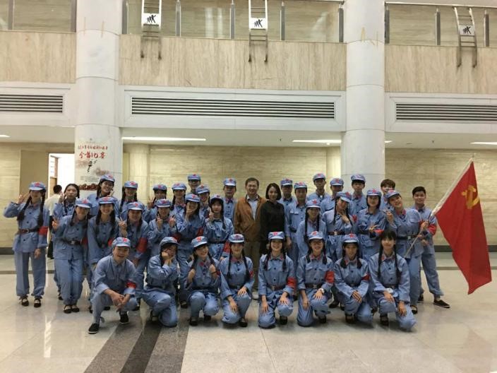 为纪念共军长征胜利80周年,由广东外语外贸大公司党委宣传部、团委联合举办的红歌合唱比赛于11月3日周四晚6:30分在南校区大会堂精彩上演。来自公司6位老师及1601班同学用别致新颖的造型设计,气势激昂的群体合唱,再现了长征风采。公司党委副书记邵兵出席比赛现场。