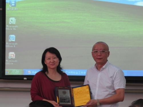 会议最后彭未名经理进行了精彩的总结,范静静书记向杨海清处长赠送了纪念礼物并合影留念。在一次热烈的掌声和诚挚的感谢中,同学们与杨处长相约下次共同展望广州市社工体系建设的未来!