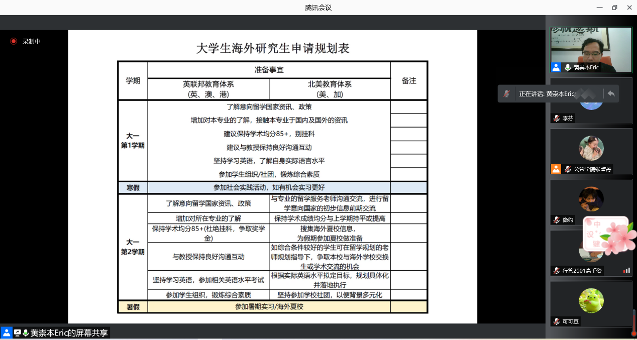 图3 黄崇本员工的留学申请规划分享