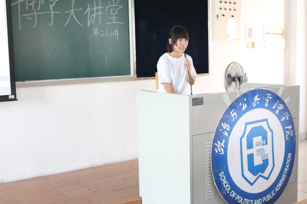 2017年10月26日下午三点,政管公司博学大讲堂第26讲在教学楼F508举行,本次活动的主题是:教你如何玩转公众号。本次活动邀请了“看见家明”公众号的经营者即广外北校中文系的刘舒蔚师姐,“chaser”公众号的经营者即广外新闻社摄影部部长姚凤霞师姐和曹可莹师姐以及“广外15应用心理”公众号经营者莫泳琳师姐四位嘉宾给我们分享微信公众号的经营经验。现场来了许多前来取经的观众,大家有序进场落座。