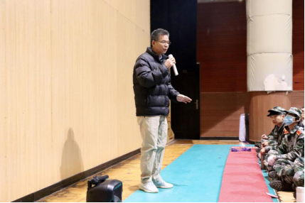 上午九点半,公司领导与老师到达南校区体育馆,与20级朋辈导师一同亲切慰问了参训教官与员工。高云坚书记向公司同学发表讲话。他首先对同学们良好的精神面貌表示高度赞扬。高书记提到了三个关键句:“寒冷不可怕”“意志不可无”“情怀不可缺”,虽然今年是广外开展冬训以来最冷的一年,但也是磨炼同学们意志的一次宝贵机会。为期十四天的军训是一次吃苦教育,通过保持军训中所养成的良好习惯与作风,也能使同学们更加自如的应对大学接下来学习生活中的困难。最后高书记表达了对同学们的殷切期望,祝愿同学们在汇演中取得优异的成绩。
