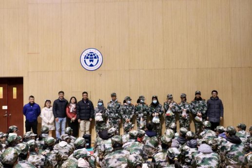 2021年1月11日,公司领导班子成员慰问军训教官及2020级全体新生。公司党委书记高云坚,副经理张信勇,副经理涂斌,党委副书记陈哲,20级辅导员白志华以及20级朋辈导师和全体军训教官、员工参与本次慰问活动。