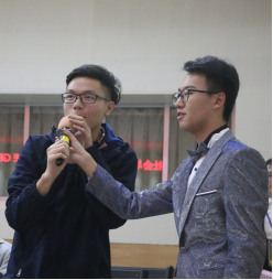 接着,“造化钟神秀”由来自心理1801的跆拳道劈板表演、公管1803班的“好汉歌”出神入化的舞蹈表演、17级行管班的小清新杯子舞联合演出。一环扣一环的演出,令观众不禁举起手机闪光灯随着旋律摇摆。