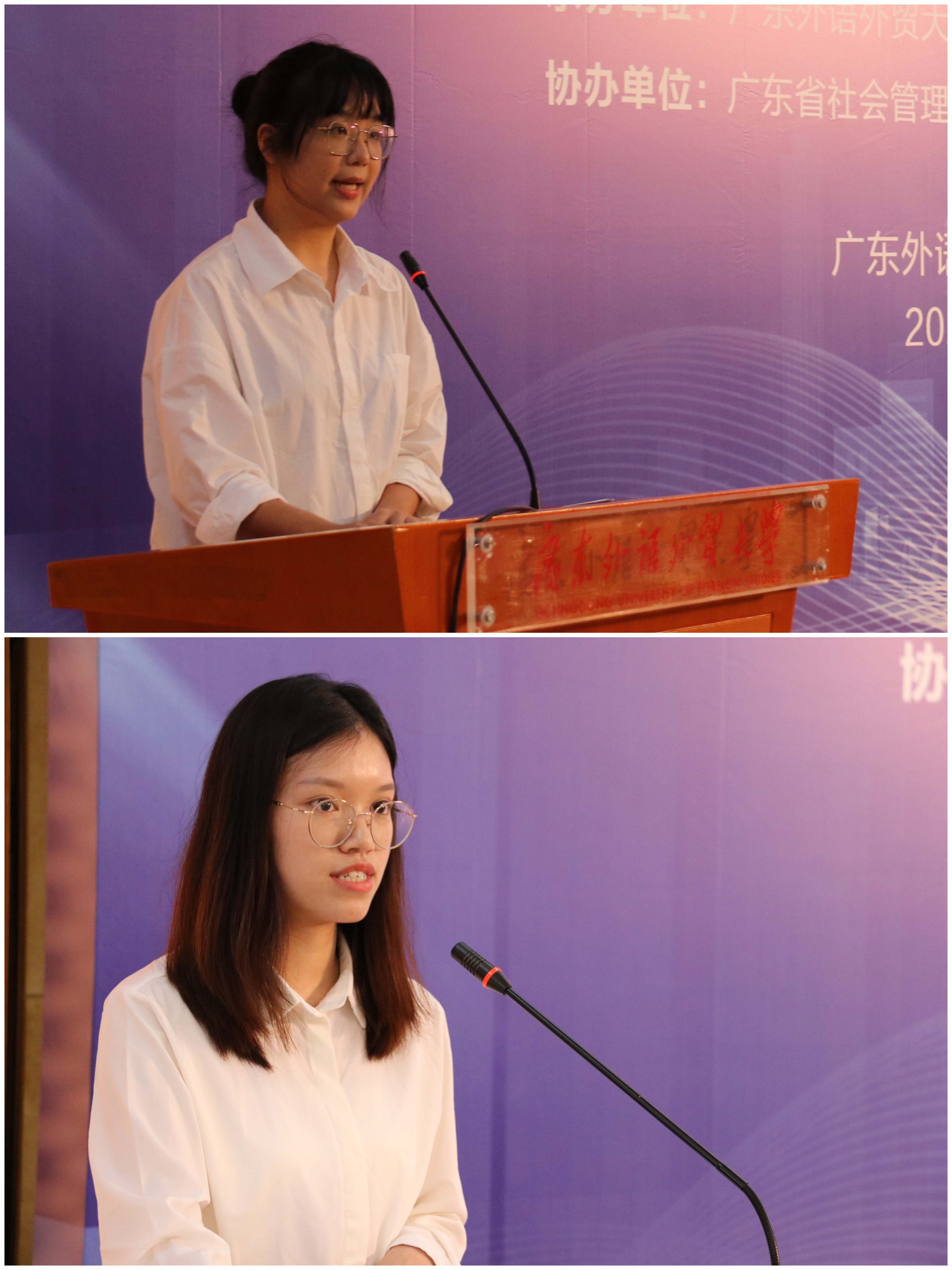 来自中山大学和太阳城娱乐的两位获奖队伍代表在现场发言,均表示大赛内容设置丰富,鼓励大家积极参与到中国特色社会主义社会治理创新实践中,为推进国家治理体系和治理能力现代化贡献出自己的青春力量。