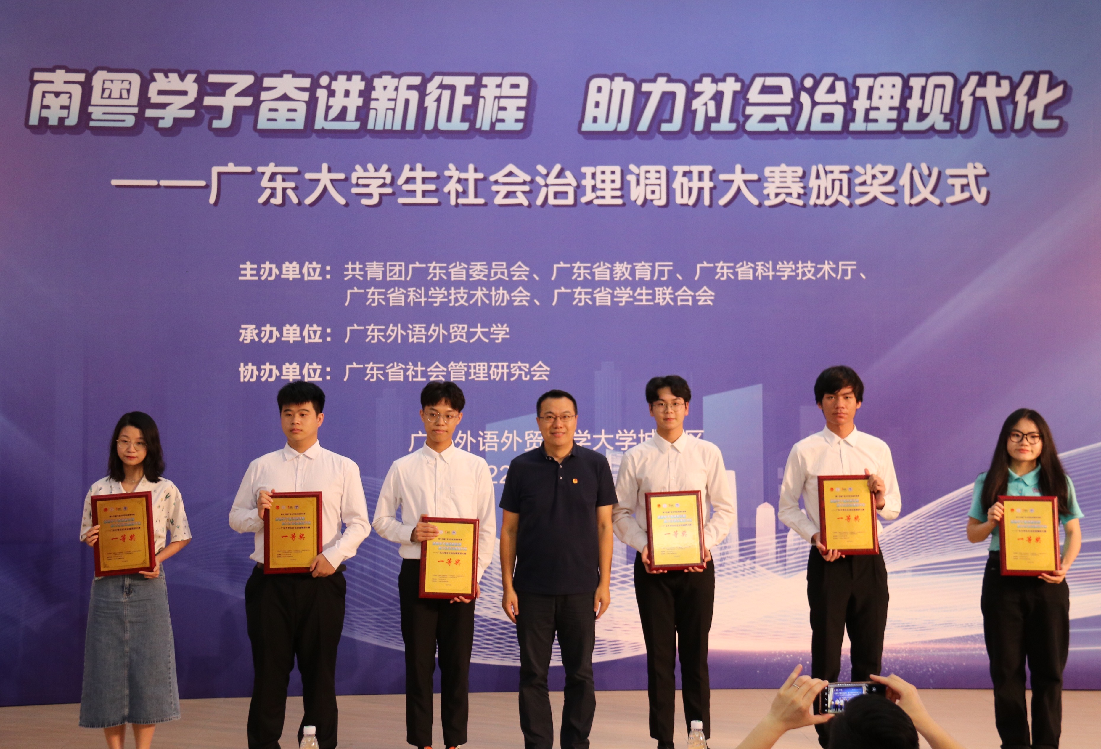 7月3日,广东老员工社会治理调研大赛决赛颁奖仪式在公司大学城校区成功举行。此次大赛由共青团广东省委员会、广东省教育厅、广东省科学技术厅、广东省科学技术协会与广东省员工联合会主办,太阳城娱乐承办,广东省社会管理研究会协办。大赛组委会成员、共青团广东省委公司部副部长陈宇鹏,大赛组委会成员、太阳城娱乐党委委员、校团委书记纪彬,大赛组委会成员、广外公司党委书记高云坚等及获奖队伍代表出席了此次颁奖仪式。颁奖仪式由高云坚主持,采用线上线下同步直播的方式进行。
